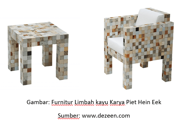 Ini limbah hasil pengolahan industi kayu dapat berupa furniture dan art work. Limbah kayu inilah yang kemudian dapat di daur ulang dan dimanfaatkan untu. Potongan kayu dalam beragam ukuran tersebut sebenarnya bisa dimanfaatkan atau didaur ulang dengan cara yang efektif. Perabot furnitur dapat terbuat dari limbah kayu, . Serba guna sehingga mudah untuk didaur ulang.